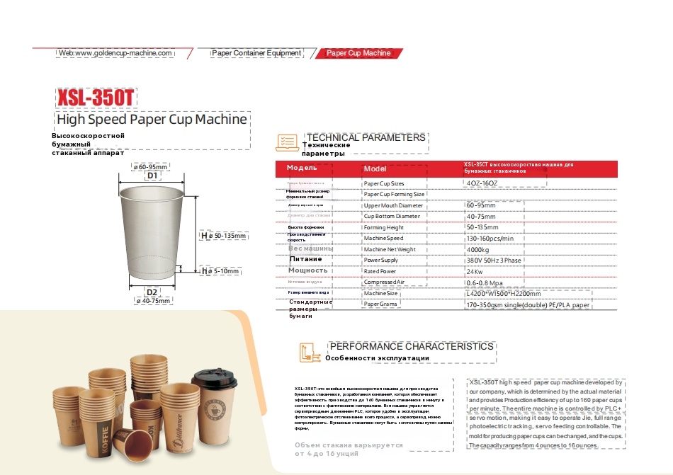 КССЛ-350Т;Машина за велике брзине за папирне чаше